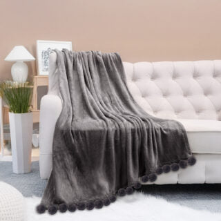 פרטים מלאיםשמיכת קורל פליז עם פומפונים