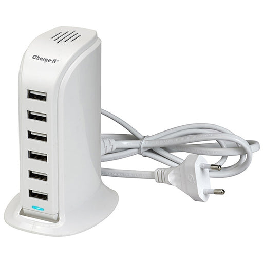 מוצרי פרסום ומתנות - גאדג'טים אביזרים לסמארטפונים, טאבלטים ואייפדים דגם 3114 תחנת טעינה 6 יציאות USB נפח טעינה 8A תוצרת Charge-it בטכנולוגית SMA...
