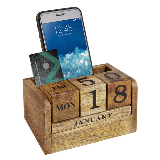 מעמד קלנדר תאריכון קוביות עץ טבעי עם מעמד כרטיסי ביקור וניידים מק"ט: 3054 מידות: רוחב 13.5 ס"מ סידורי 77259002Z
