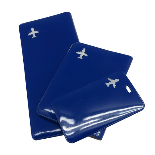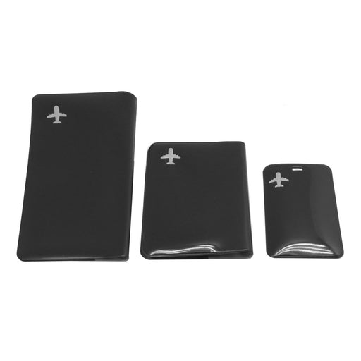 מוצרי פרסום ומתנות - מוצרים לנסיעה דגם 1649 סט טיסה עשוי PVC 3 חלקים הכולל תג שם למזוודה, נרתיק כריכה לדרכון ונרתיק לכרטיסי טיסה באריזת PVC סידורי...