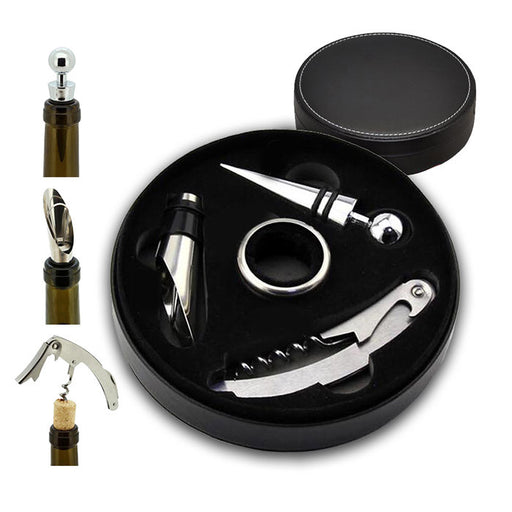 מוצרי פרסום ומתנות - מתנות לחגים שאטו || דגם 2279 מארז אביזרי יין מעוצב עשוי דמוי עור קוטר 14.5 ס"מ