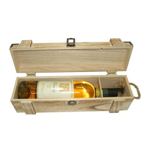 דגם 7777 קופסא לבקבוק יין (גודל רגיל} עשויה מעץ בעל גוון טבעי חבל בצידה העליון המשמש לנשיאה פינות עם גימורי מתכת. מנעול מתכת המוצר מגיע עם מספר חת...
