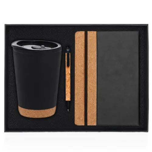 דגם 0803 • במבוק סט מתנה מושלם סט מתנה מושלם הכולל מחברת A5 מעוצבת בשילוב שעם ספל תרמי מעוצב בשילוב שעם 330 מ"ל ועט ג'ל בשילוב שעם במארז מ...